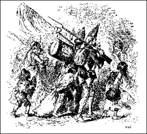 Kochgeschirr und anderes Lagergerät wurden auf Fuhrwerken transportiert.